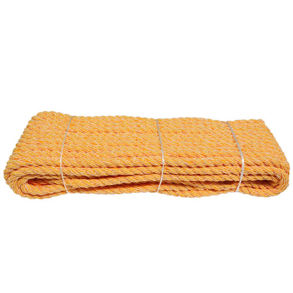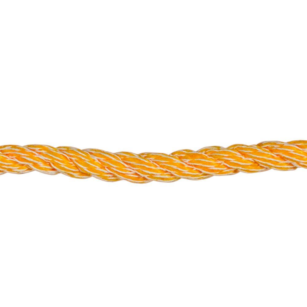 Use this polypropylene rope to secure freight, for marine purposes and more. This twisted rope has a strong resistance against chemicals, oil, mildew, water and rotting. It has a breaking strength of 2,204 lbs., but is not for use with overhead lifting applications. The pliable twisted construction is ideal to secure large loads.