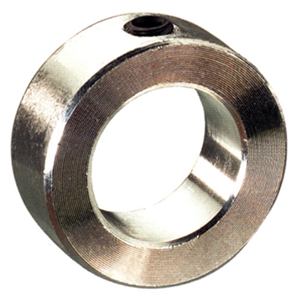 This 1/2" ID set screw collar is 1" OD and is 7/16" in thickness. It has one set screw. It is commonly used as stops on motors and gearboxes.