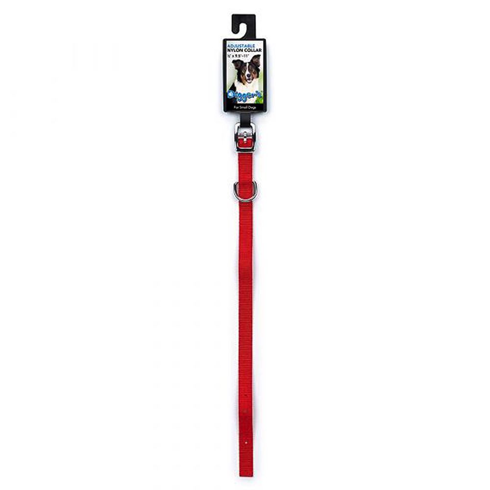 This 1/2" x 14" red-collar features a chrome-plated buckle and strong double-layer nylon for medium/large size dogs.
