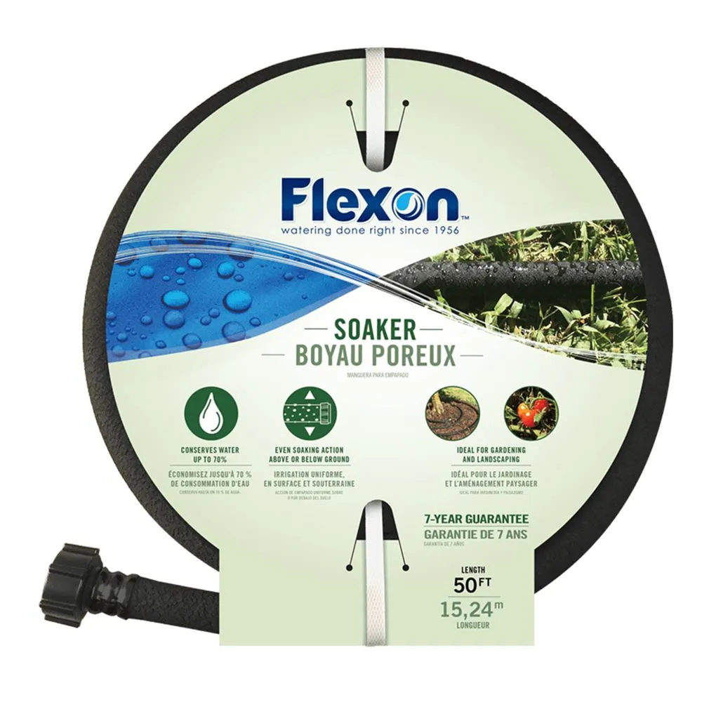 This soaker hose from Flexon is best used for irrigation, gardening, and vegetable gardens. It offers up to a 70 percent improvement in water conservation over conventional watering methods.