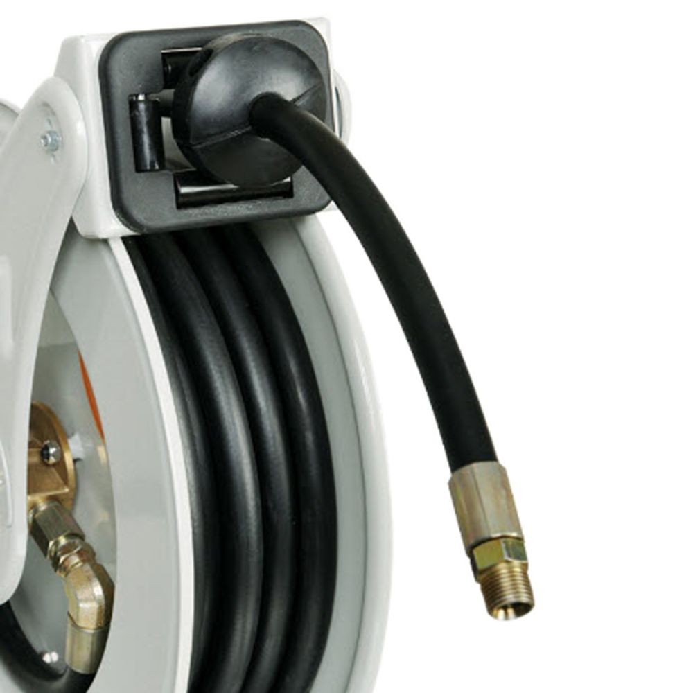 This is a perfect way to keep your garage safe and clutter-free with this retractable air hose reel.