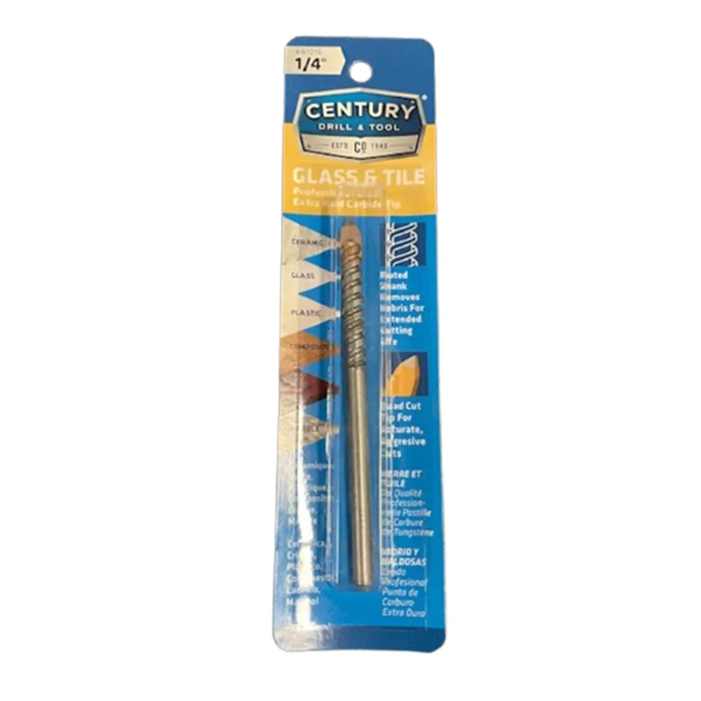 This Century® 1/4 Inch Glass and Tile Masonry Drill Bit is excellent for drilling ceramic, non-tempered glass, plastic, composite, brick and marble.