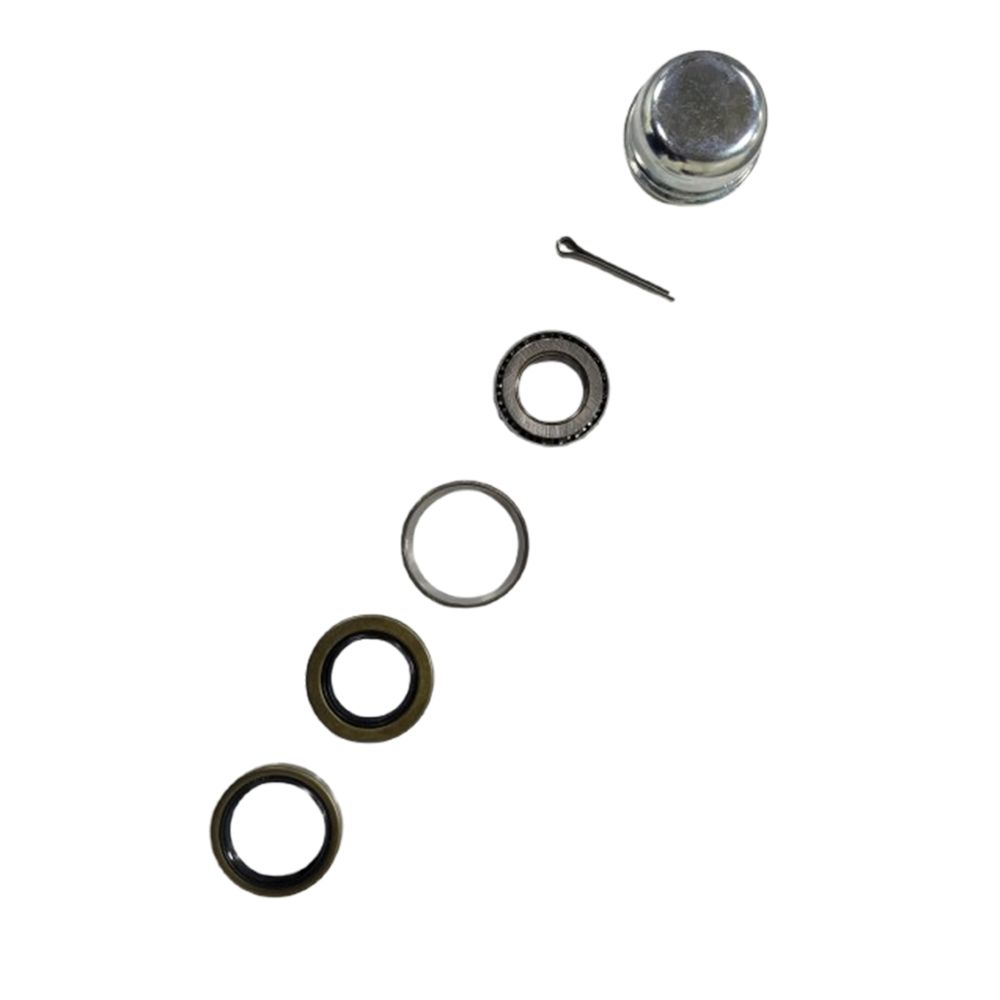 This trailer-bearing kit can help you keep your trailer moving smoothly. Kit includes: L44610 (2) bearing cups, L44643 (2) bearing cones, SL-150-1 (1) 1-1/2 in. seal, SL-122-1 (1) 1-1/4 in. seal, 1505 (1) dust cap, SCP-103 (1) cotter pin.