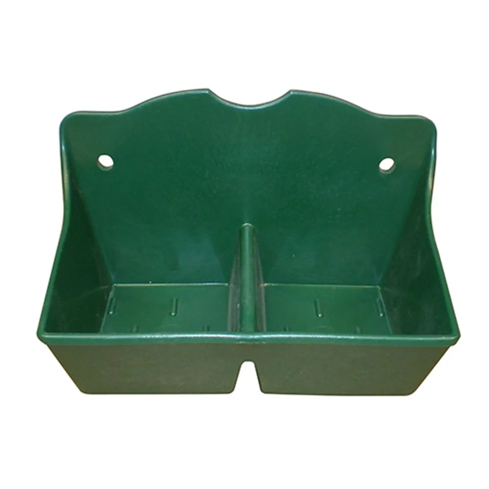 Simplify your mineral feeding measurements by using this handy one quart feeder. It has two compartments consisting of one pint each totaling 1 quart. Great for granulated minerals and feeds. Made from tough high impact plastic to prevent cracking. Installation is easy using the two pre drilled holes (screws not included). Measures 9.19 inch long by 5.56 inch wide by 5.5 inch high. Holds a total of 1 quart in the two pint compartments.