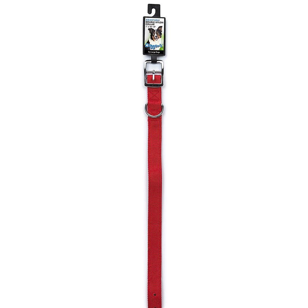 This 1" x 22" red-collar features a chrome-plated buckle and strong double-layer nylon for medium/large size dogs.