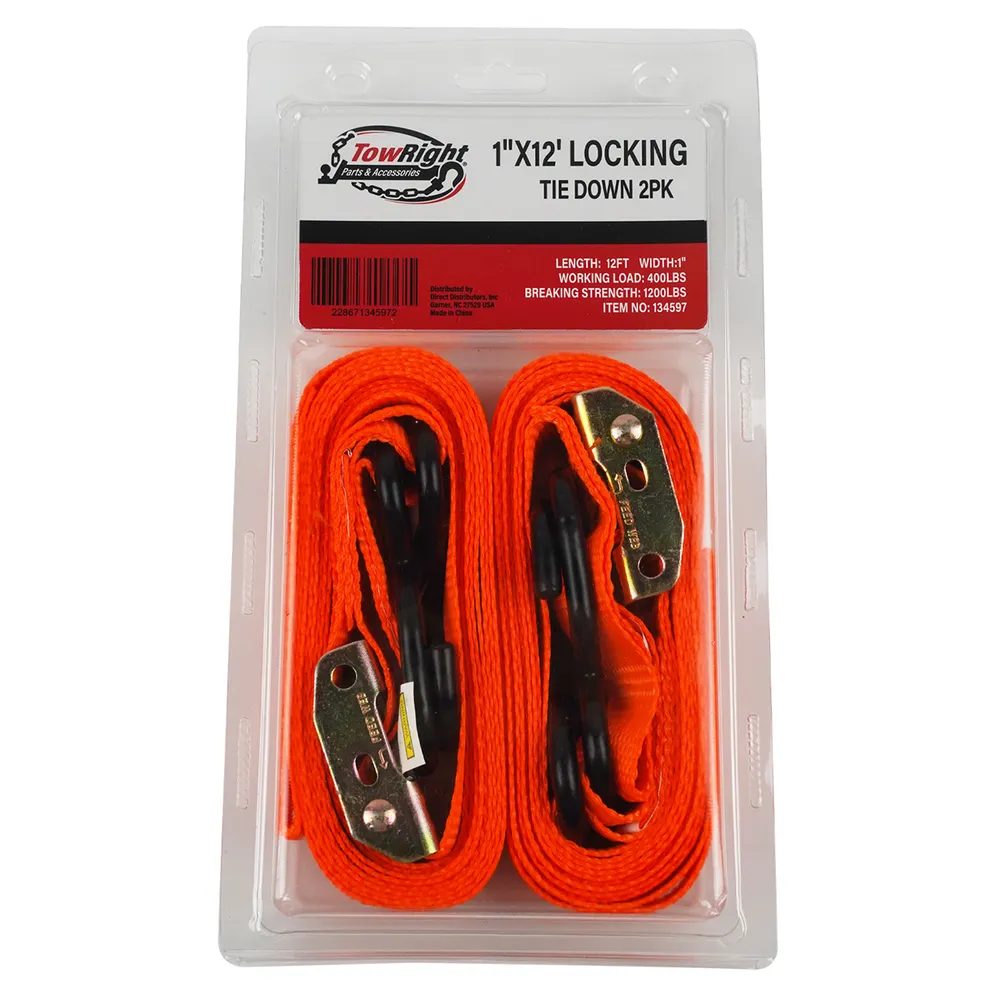 TowRight® Locking Tie Downs ensure the strap maintains tension without slipping, giving you confidence that your load—such as kayaks, motorcycles, furniture, or construction materials—will not shift during transport.