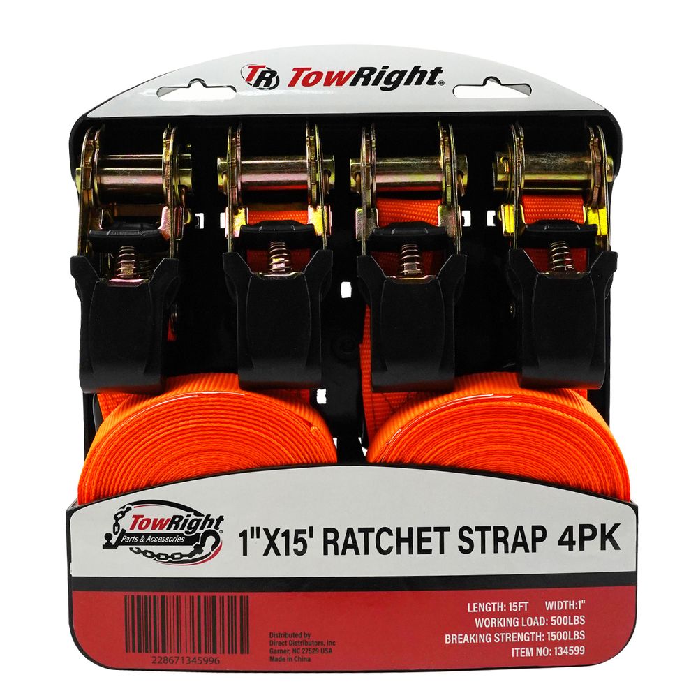 TowRight® ratchet straps offer a balance of high strength for lighter loads and necessary length for versatile tie-down jobs, making it a reliable choice for movers, homeowners, and adventurers alike.