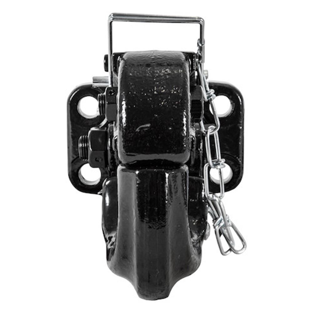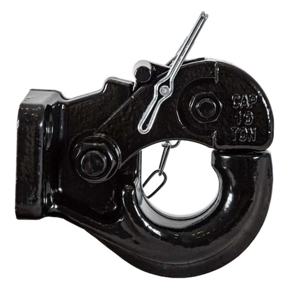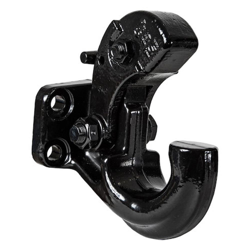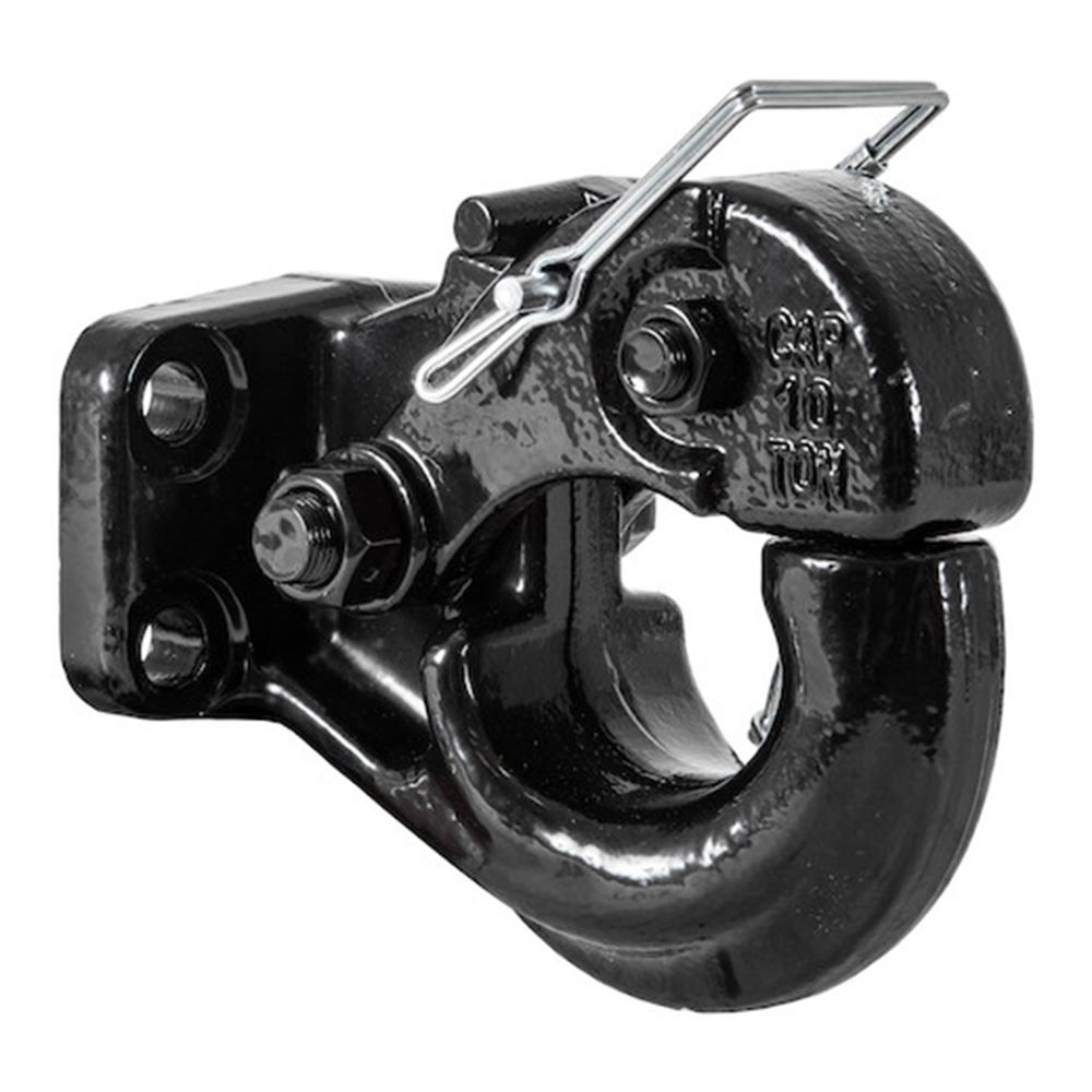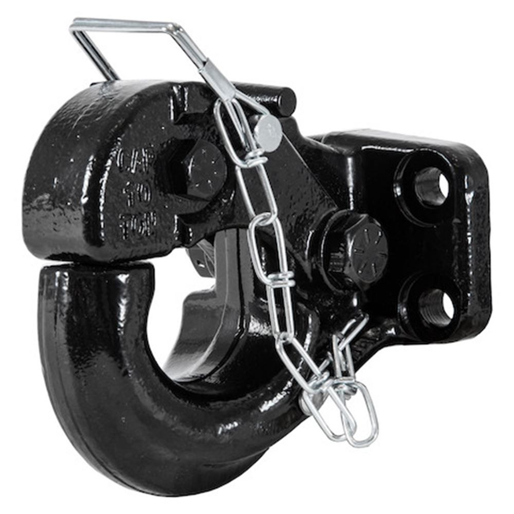 This black 10-ton pintle hook with mount can handle a gross trailer weight of up to 20,000 pounds, making it suitable for a wide range of heavy-duty towing needs.