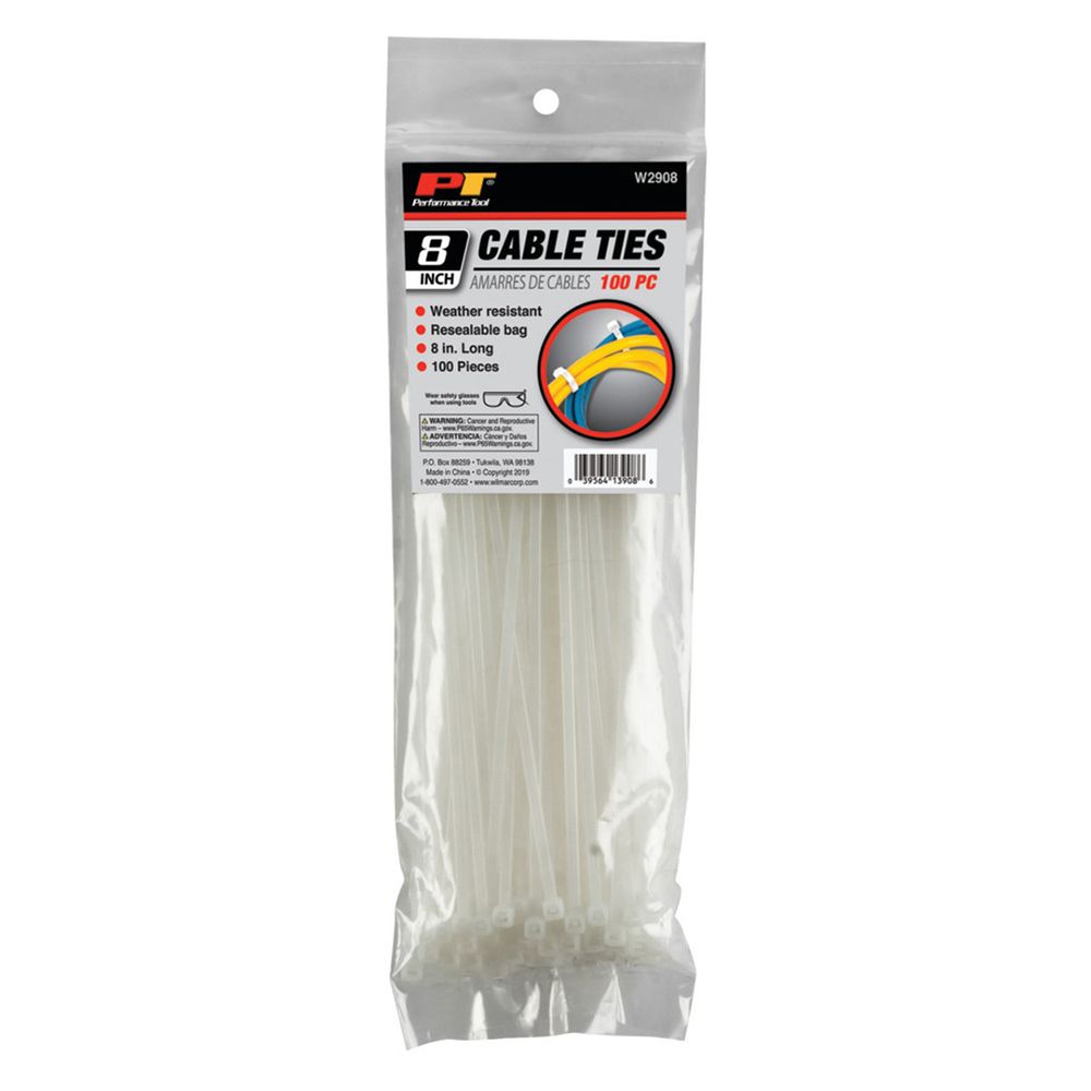 This 100-pack of 8-inch long white cable ties helps to keep them organized and prevent damage.