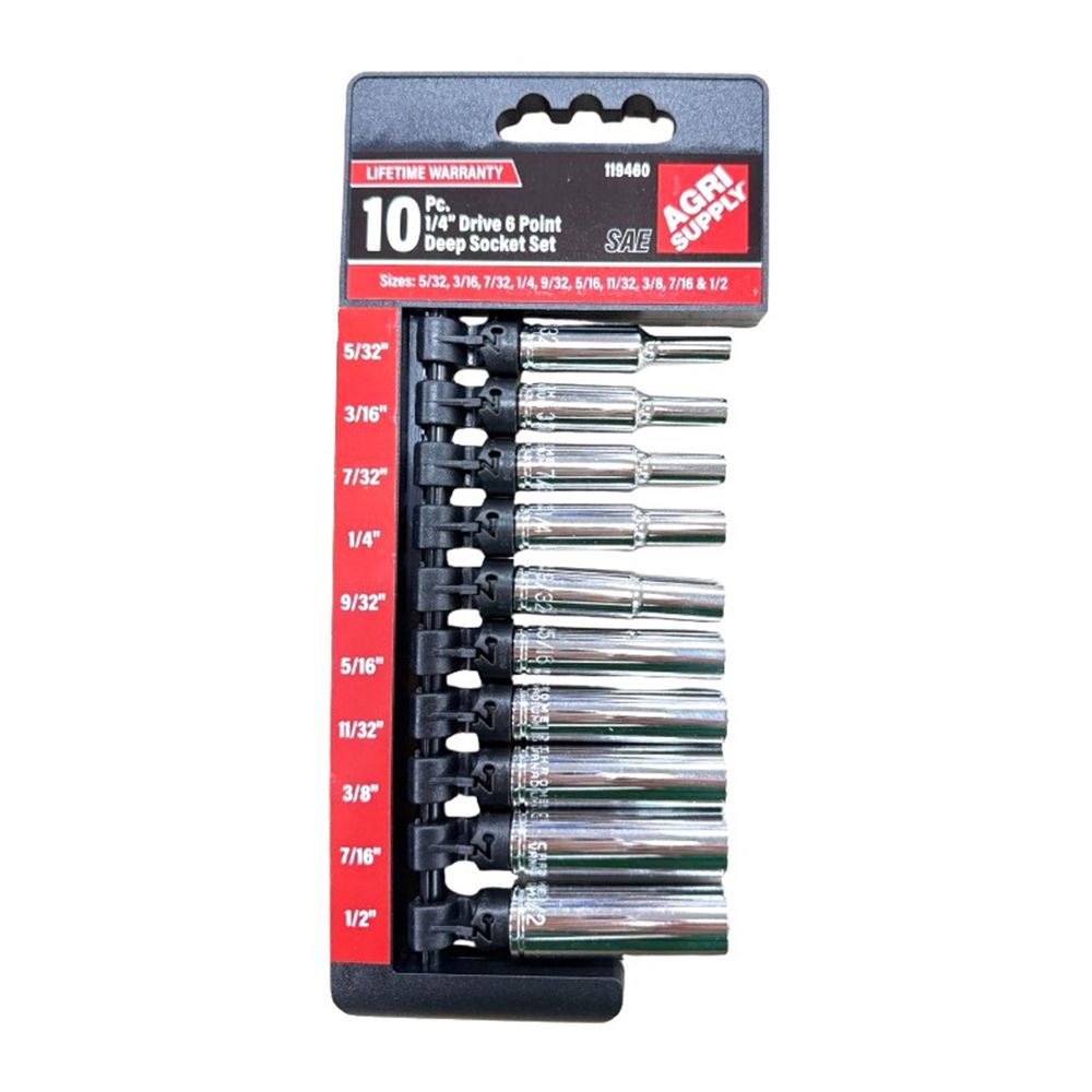Agri Supply® 1/4" Drive 10 pc 6 Point SAE Deep Well Socket Set