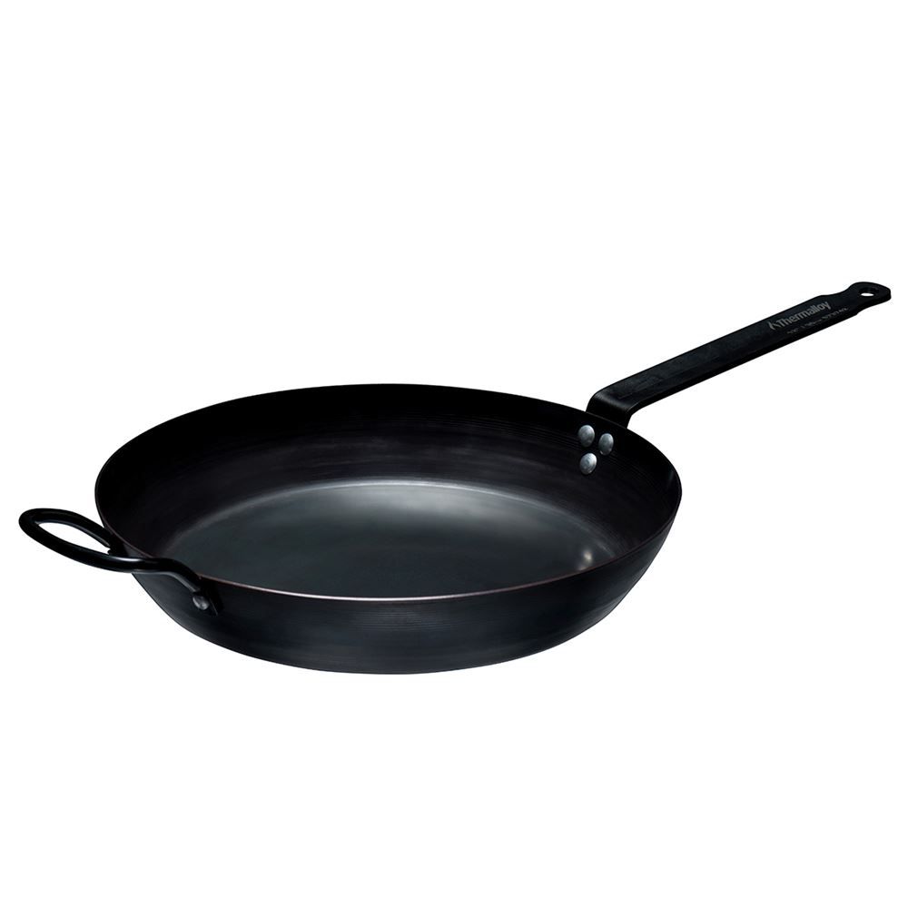 Cook like a professional chef with this pre-season carbon steel fry pan from Thermalloy. Once done cooking, just present the food tabletop in this pan for a unique serving piece.