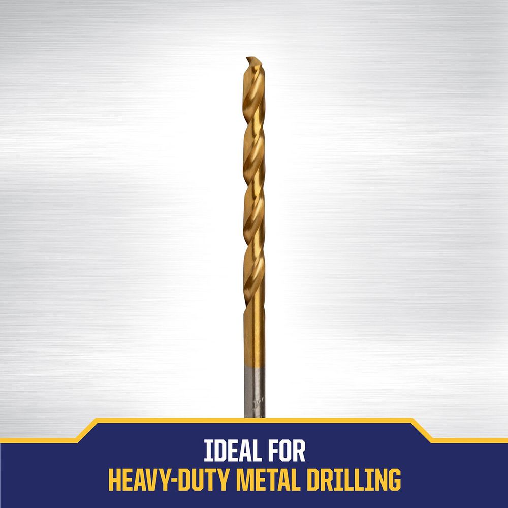 The titanium nitride coating on this 11/64" drill bit extends the life of the bit. It lasts six times longer than standard high steel drill bits. It has a 135-degree split point which reduces feed pressure for easier penetration.