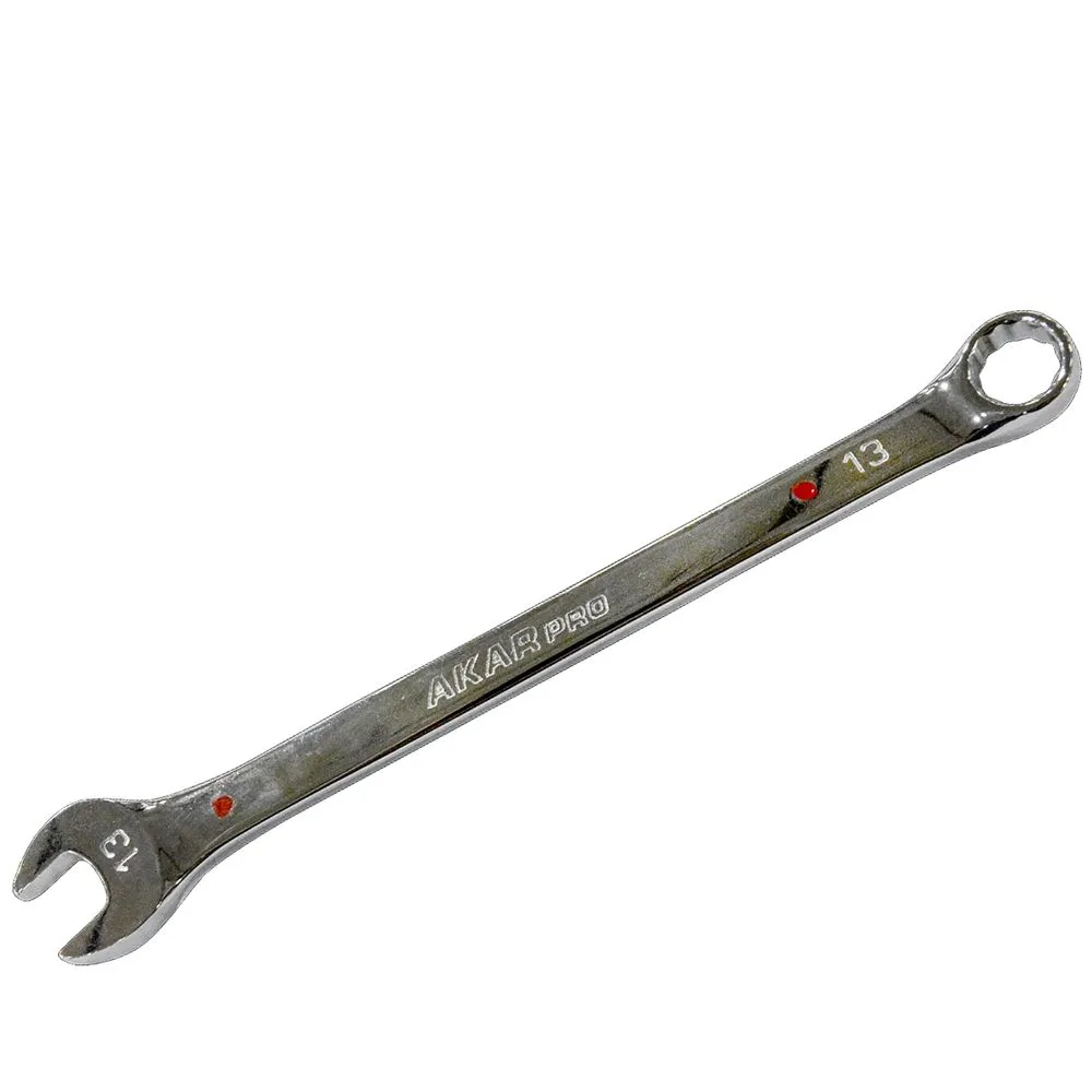 This Spanner 13 MM extra long combination wrench has 12 points and is made with forged tough alloy steel. This wrench is rust / corrosion resistant and is also heat treated for maximum strength.