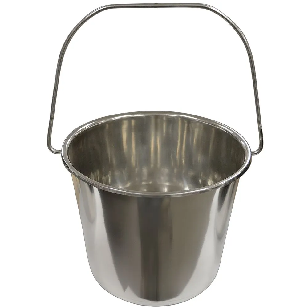 This mirror polish stainless steel, one-piece seamless construction bucket is great for home or farm use. This bucket is easy to clean and can hold up to 14 liters or just over 3-1/2 gallons of liquid.