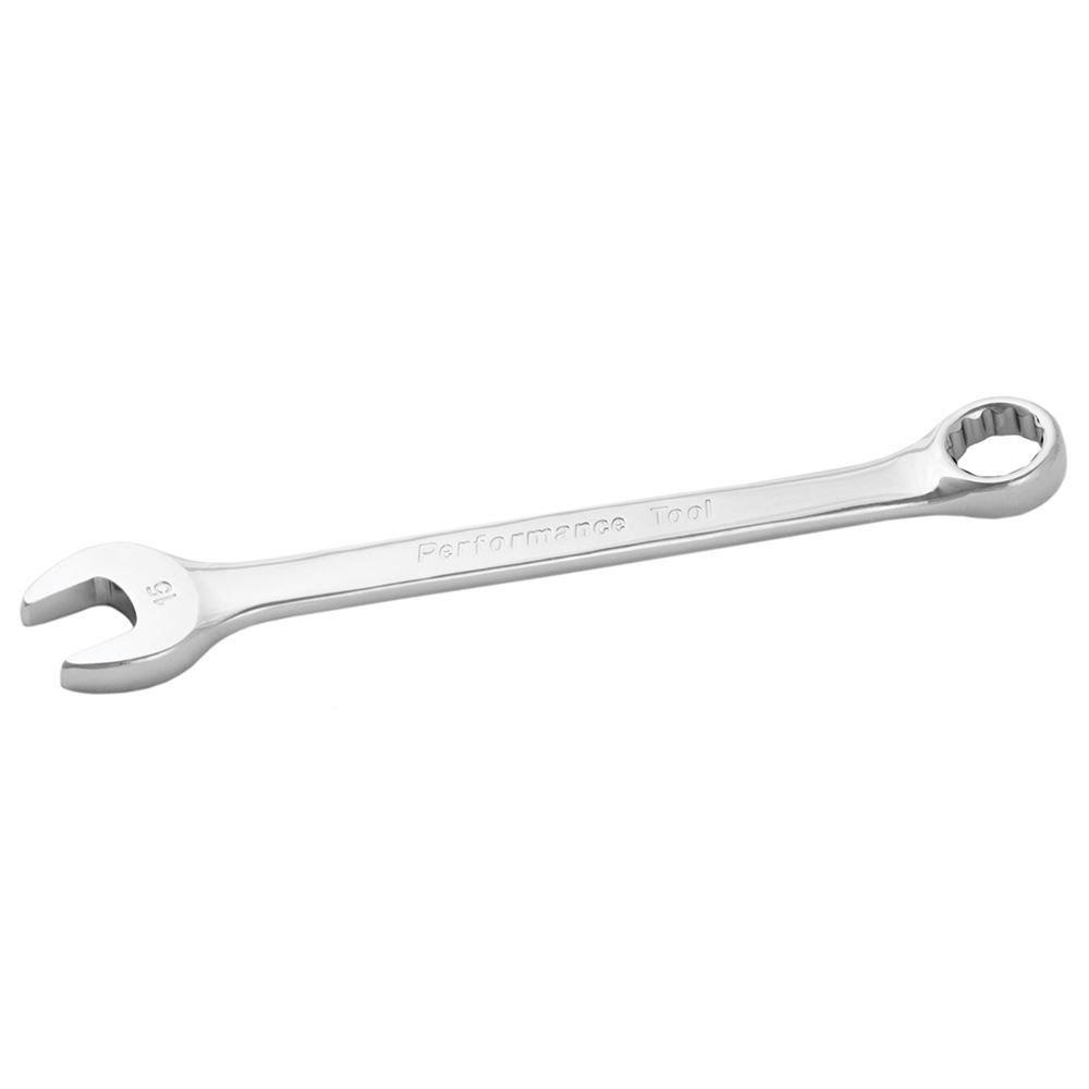 Here we have another quality tool from Performance Tools in this 15mm combo wrench. Made from premium quality drop forged and hardened chrome alloy steel, this combo wrench is built to hold up to the rigors of repairing automobiles and equipment.