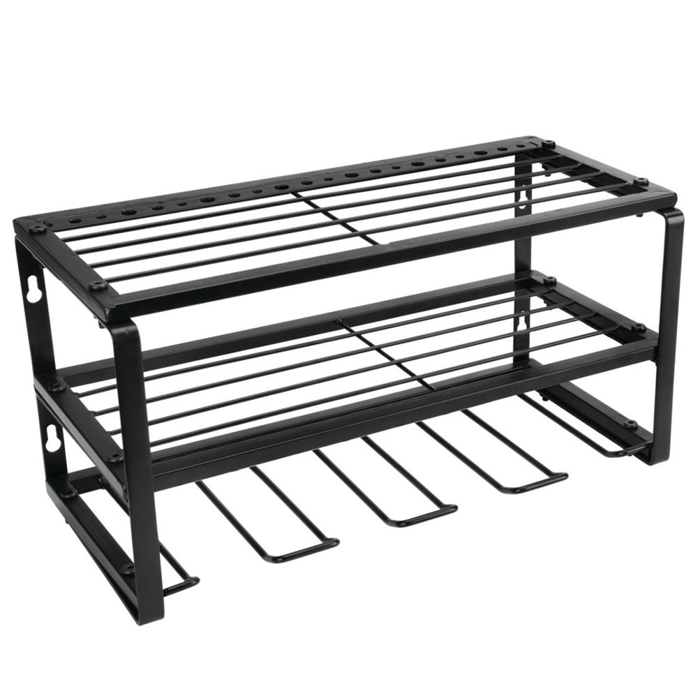 - 21-hole plate is welded along the back of the top shelf and can be used to store screwdrivers or other accessories