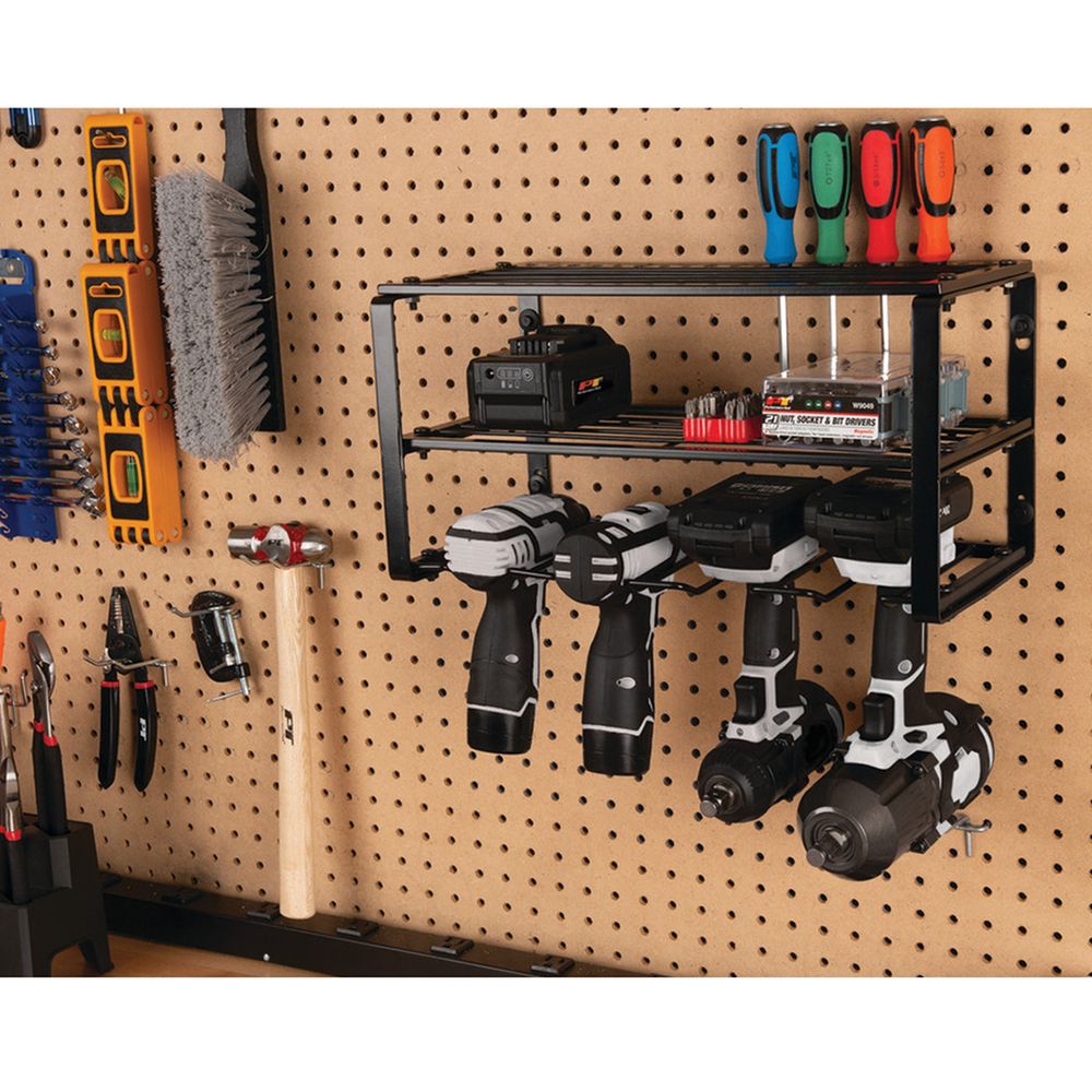 - This sturdy power tool organizer is wall-mountable on the wall and provides ample storage for your tools