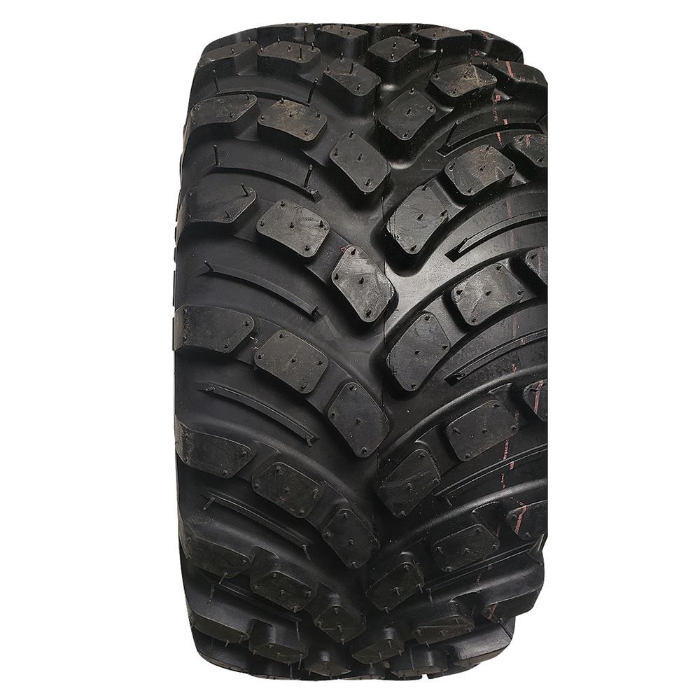 - Rounded shoulders on the tire minimize turf damage during turns