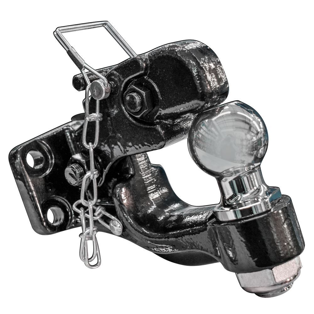 This 2" ball and pintle combination is constructed from a solid forged steel and has a black powder coated finish for durable protection.