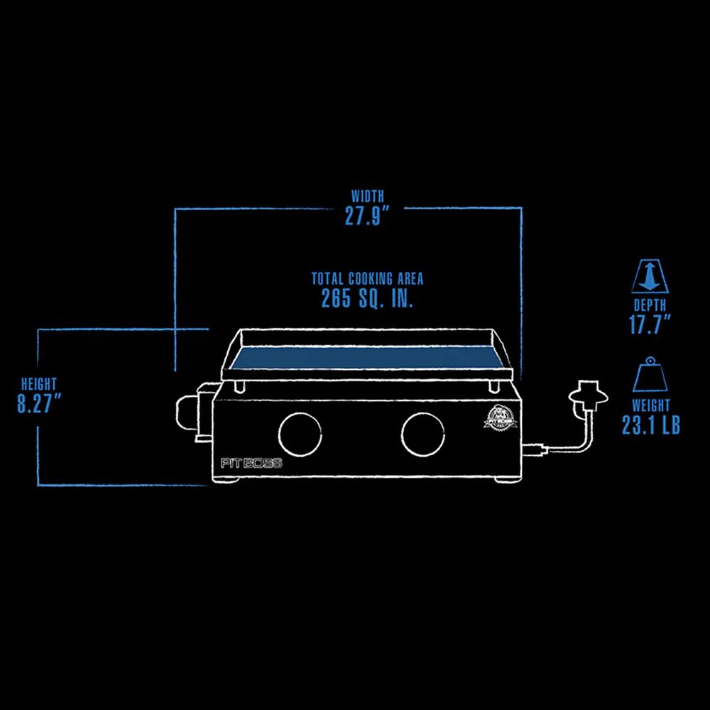 • Cooking surface measures 18.5 inches long by 14.33 inches wide providing 265 square inches of cooking area.