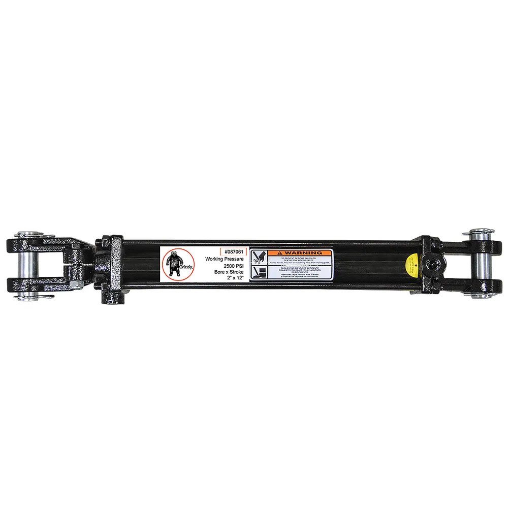 Grizzly® hydraulic cylinders are constructed of high strength steel and include tie rods to prevent high pressure failure. This cylinder features a 2" inch bore with a 12" inch stroke and has a 1" inch pin.