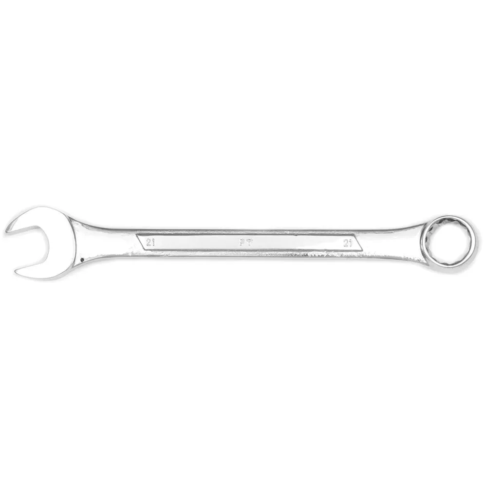 Here we have another quality tool from Performance Tools in this 21mm combo wrench. Made from drop forged and hardened chrome alloy steel, this combo wrench is built to hold up to the rigors of repairing automobiles and equipment.