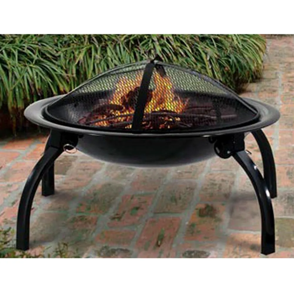 Cozy up anywhere with this easy-to-set-up no tools required portable fire pit. The base and legs fold up easily by removing four pins. It includes a grate on the bottom to allow airflow and a doomed mesh spark guard screen with a lifting tool to keep the fire managed.