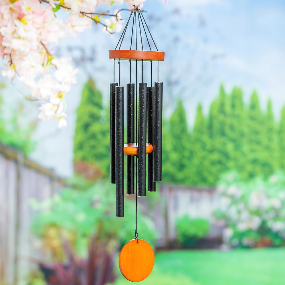 This 27-inch-long Amazing Grace windchime is hand-tuned and offers a deep-color finish that is resistant to chipping and fading. The powder-coated tubes are complemented by the rich ash wood base, striker, and decorative-shaped windsail.