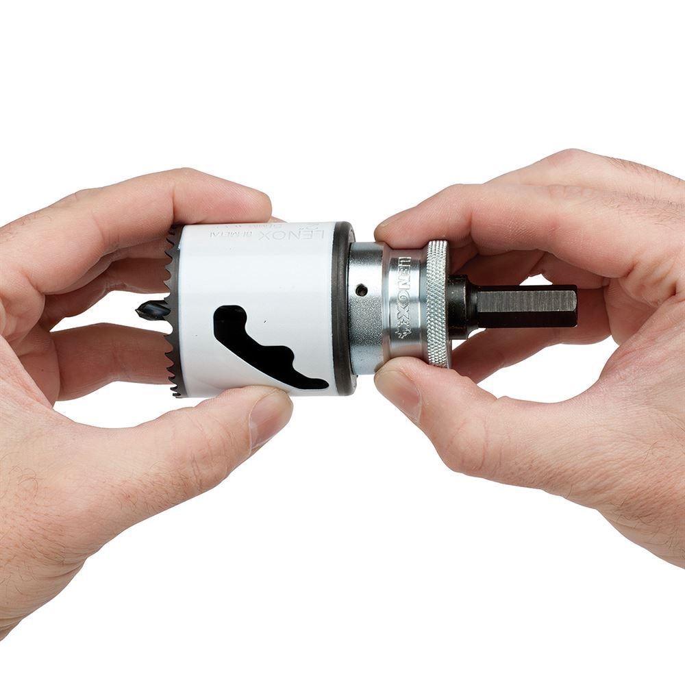 Lenox Snap-Back arbors allow the quick change between hole saws. It prevents the issues of stripping threads and the need for tools.