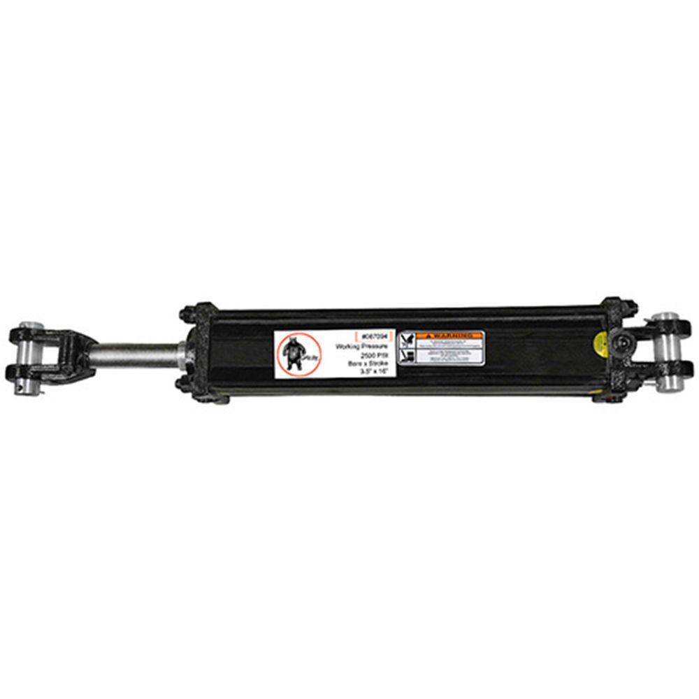 Ideal for agricultural applications, this Grizzly® hydraulic cylinder has a 3-1/2 in. bore and an 16 in. stroke. The retracted length is 31-1/2 in. and the rod diameter measures 1-1/2 in. Use this hydraulic cylinder for a working pressure of 2500 PSI.