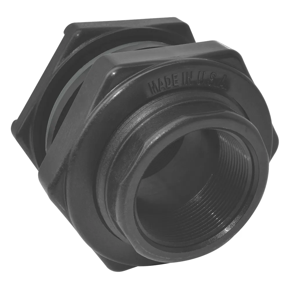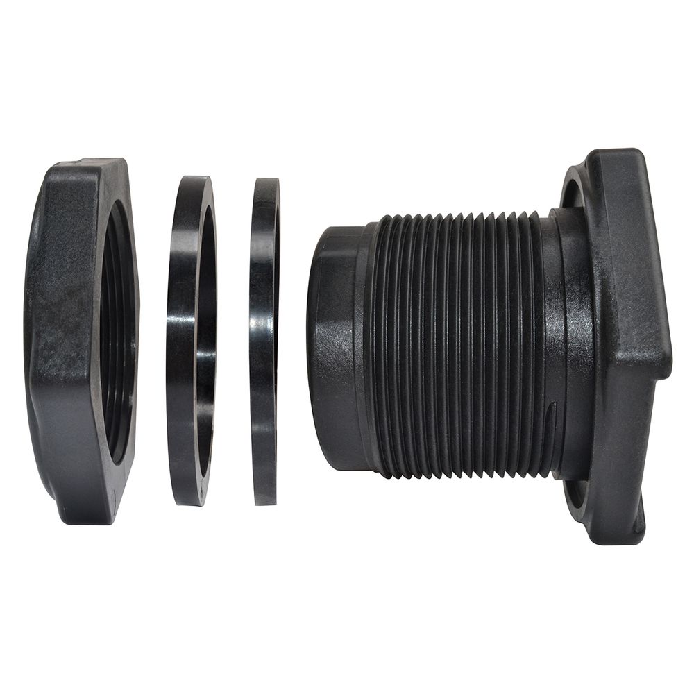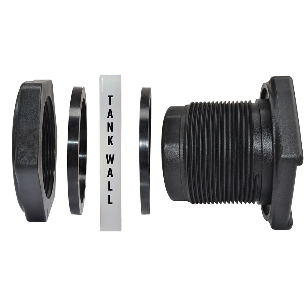 This 3/4 Inch Tank Bung Adapter Fitting With EPDM Gasket is for use with tanks having a wall thickness of 1/16 to 1/2 inch