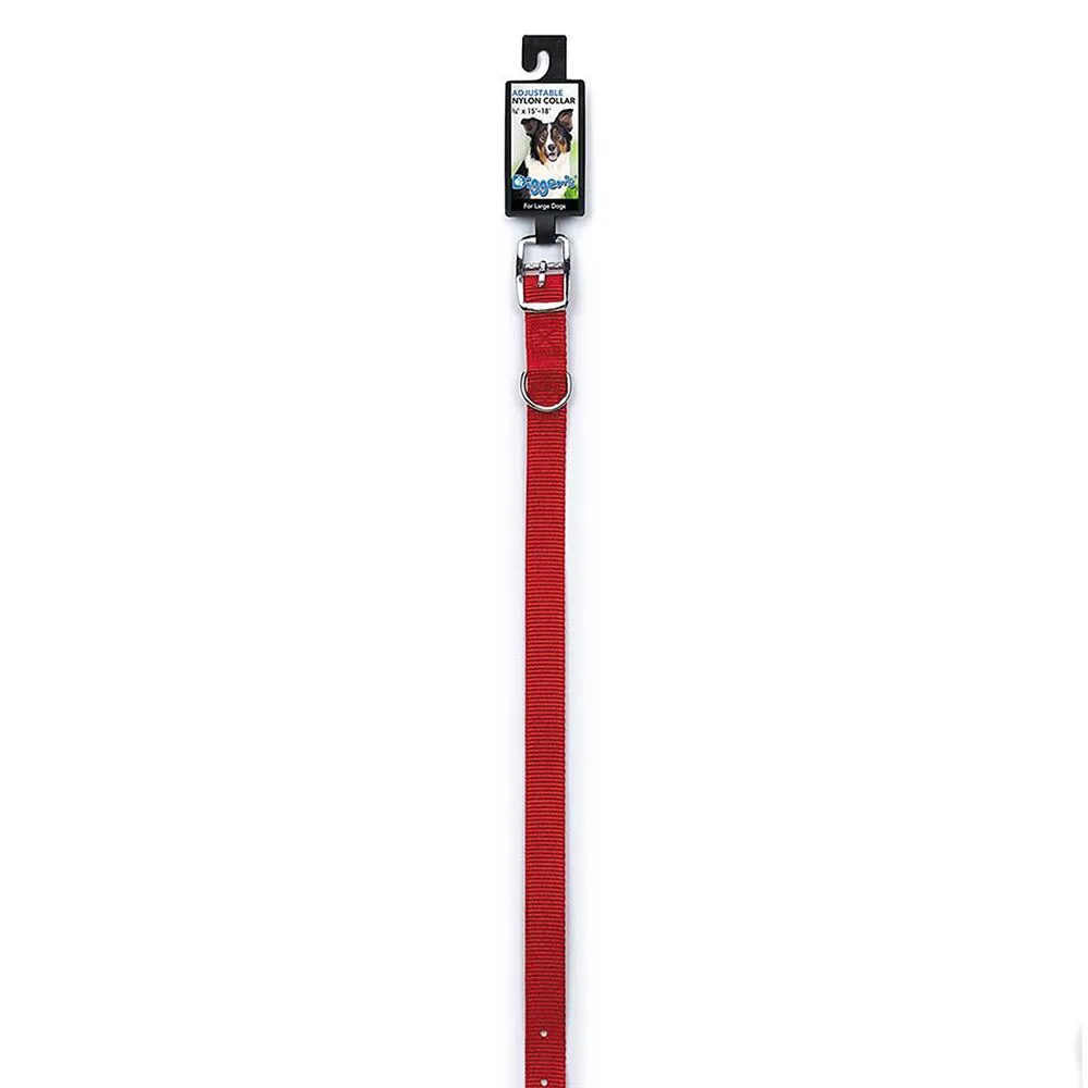 This 3/4" x 16" red-collar features a chrome-plated buckle and strong double-layer nylon for medium/large size dogs.