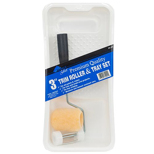 This 3 Piece Tray Set includes a 3 inch roller frame, roller cover and plastic tray.
