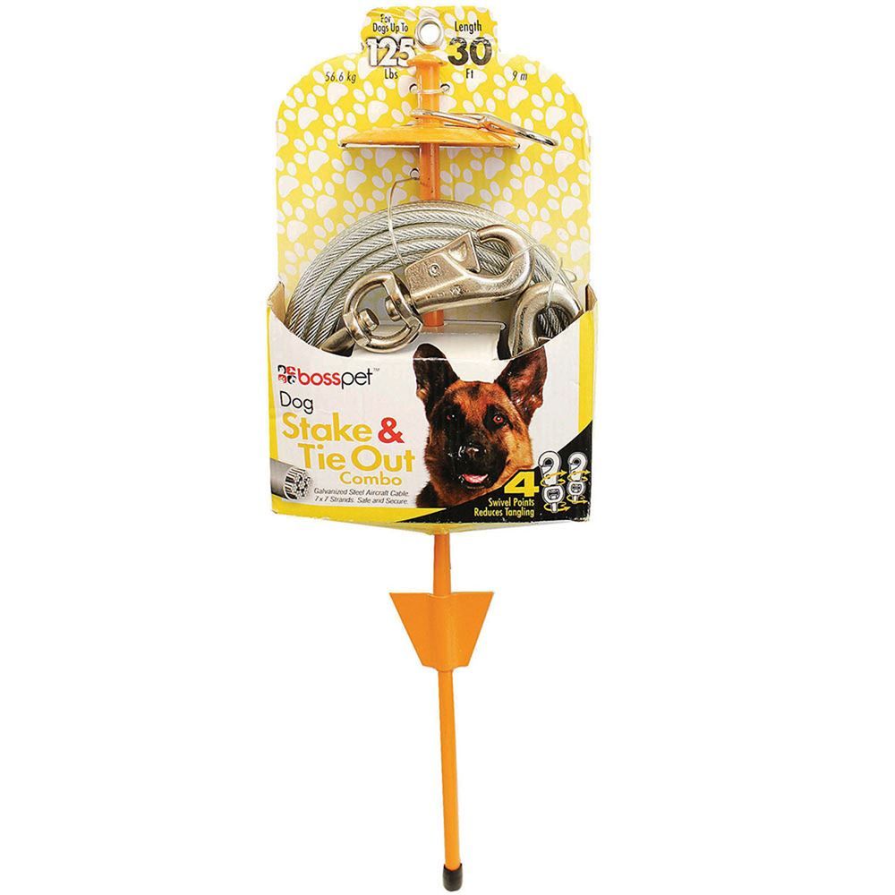 Made from galvanized aircraft cable and crack-resistant vinyl this XL Tie-Out secures deep into the ground providing 360 degrees of roaming freedom.