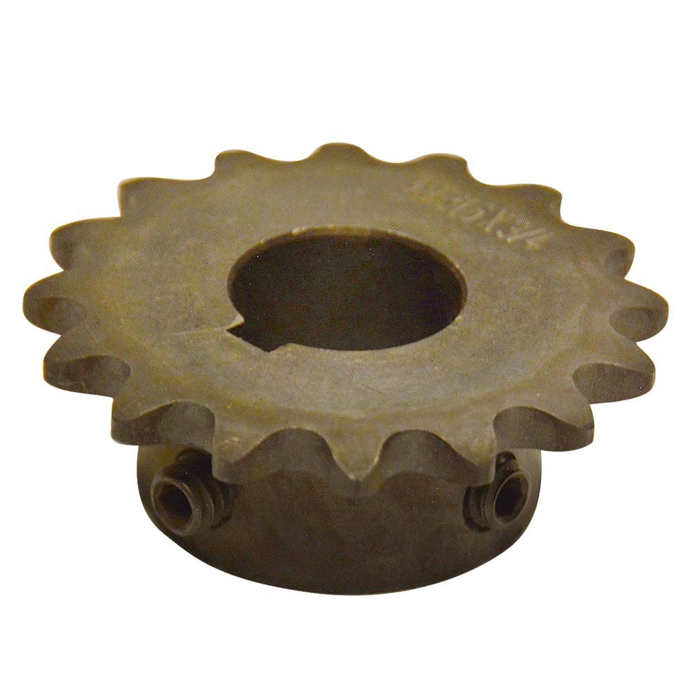 Maintain chain driven machinery with the help of a new roller sprocket. This steel constructed sprocket wheel has 16 teeth and may use a size 35 roller chain. The sprocket wheel has an outside diameter of 2-1/10 in., with a central round bore running through the sprocket wheel. The bore measures 3/4 in. W and 3/4 in. L. For an easy installation, there are 2 screw holes with 1 located over Kw and the other at 90 degrees, with a set screw size of 1/4- 20 x 1/4. There are a variety of other sized chain sprockets available.