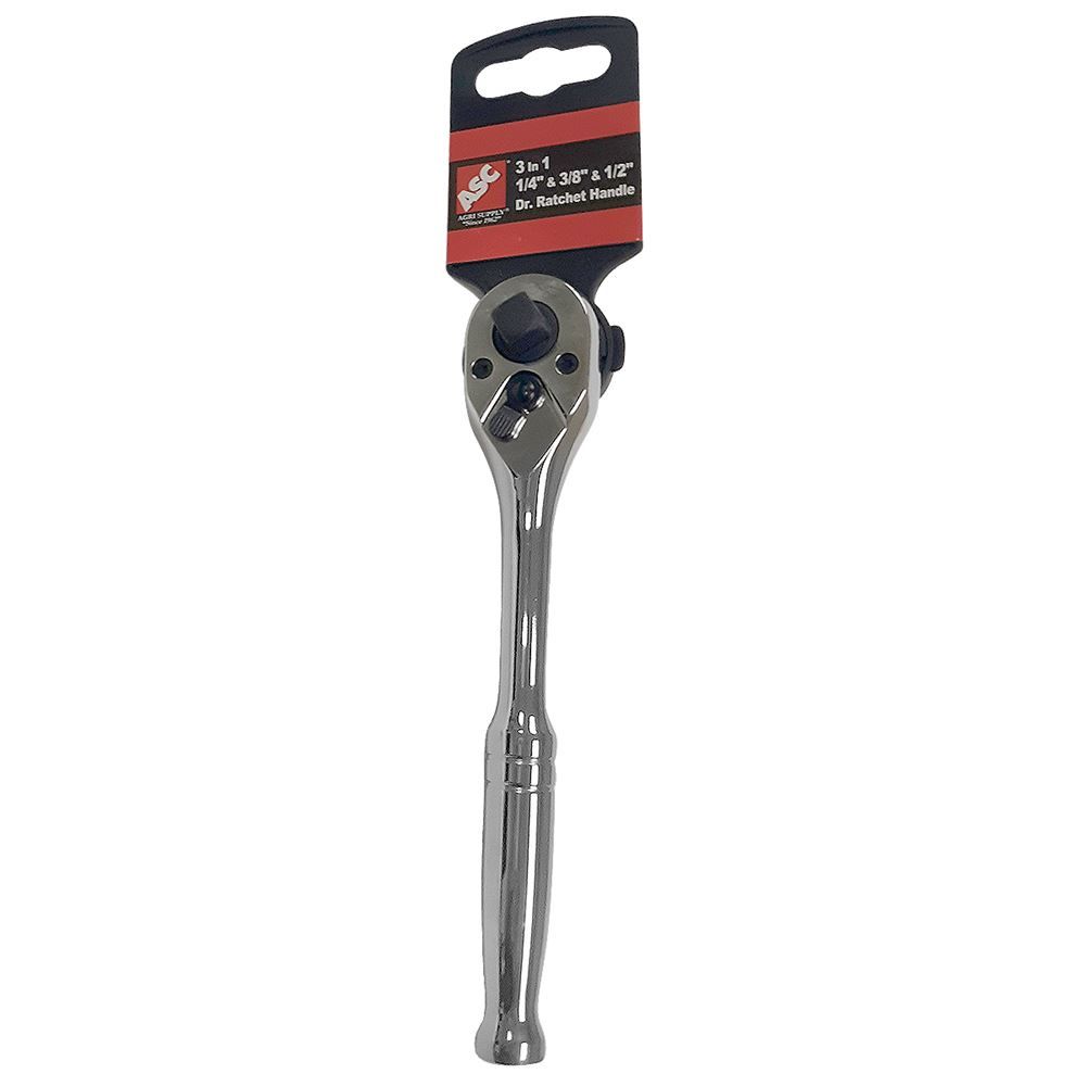 Three In One Ratchet for 1/4 inch, 3/8 inch or 1/2 inch Sockets