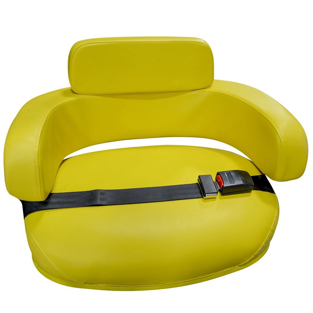 This tractor seat is a heavy duty vinyl 3-piece replacement cushion set. It is made from heavy gauge steel construction with heavy duty yellow vinyl cover on high density foam. The set includes the seat and the upper and lower backrest. This tractor seat does not come from the original equipment manufacturer. The hardware is not included. This seat replaces John Deere number TY9326. OEM numbers for identification purposes only. This seat fits the following John Deere models: Tractor Models 600, 820, 830, 2010, 2510, 2520, 3010, 3020, 4000, 4010, 4020, 4025, 4030, 4230, 4240, 4320, 4430, 4440, 4520, 4620, 4630, 5010, 5020, 6030, 7020, 7520, and 5020; Combine Models 45 (S/N to 6900), 55 (S/N to 69000), 95 (S/N 20001 up), 95H (S/N 23501 up), 96, 105 (S/N 3001 up), 3300, 5200, 5400, 6600, 6602, and 7700; Cotton Picker Models 99 (Deluxe Seat), 299, 9900, and 9910; Cotton Stripper Model 484; Forage Harvester Models 5200 and 5400; Hay Cuber Models 400, and 425; and Sprayer Model 6000.