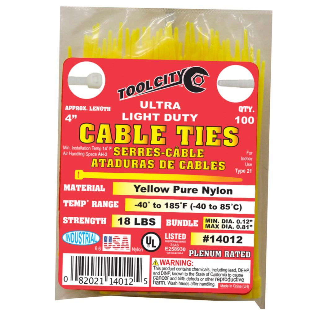 4 in. Ultra Light-Duty Yellow Cable Ties 100-Piece