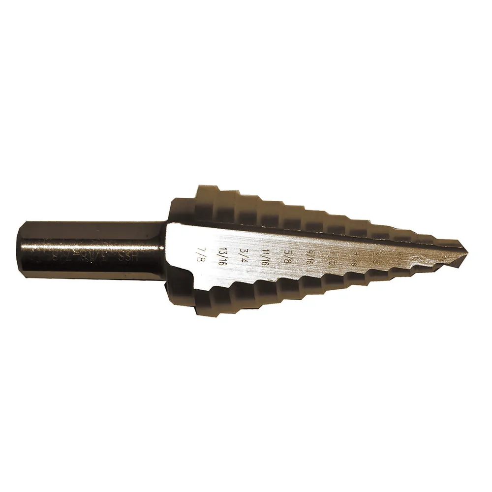 This Century® High Speed Steel 8 Step Drill Bit is used for drilling and deburring holes in ferrous and non-ferrous metals, plastic and wood up to 1/8 inch thick