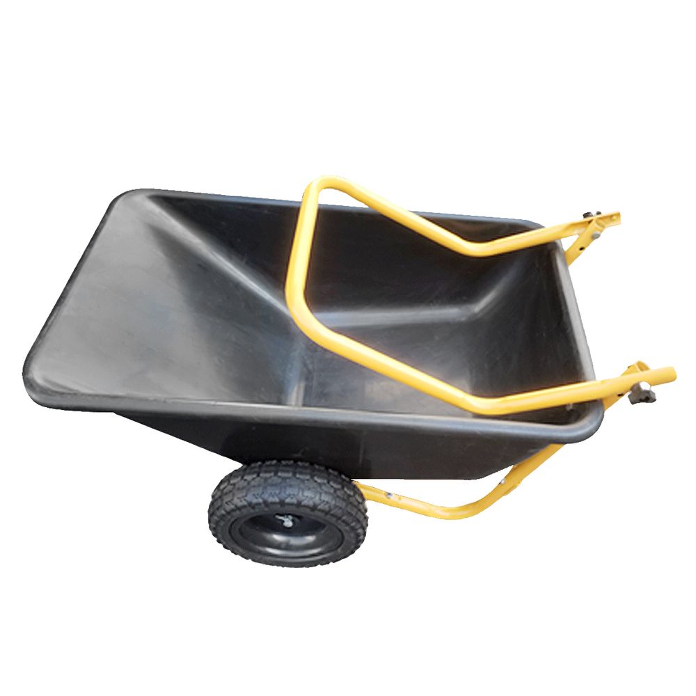 This black 4-cubic foot-wheeled yard cart is perfect for hauling supplies and equipment, and creating a mobile workstation.