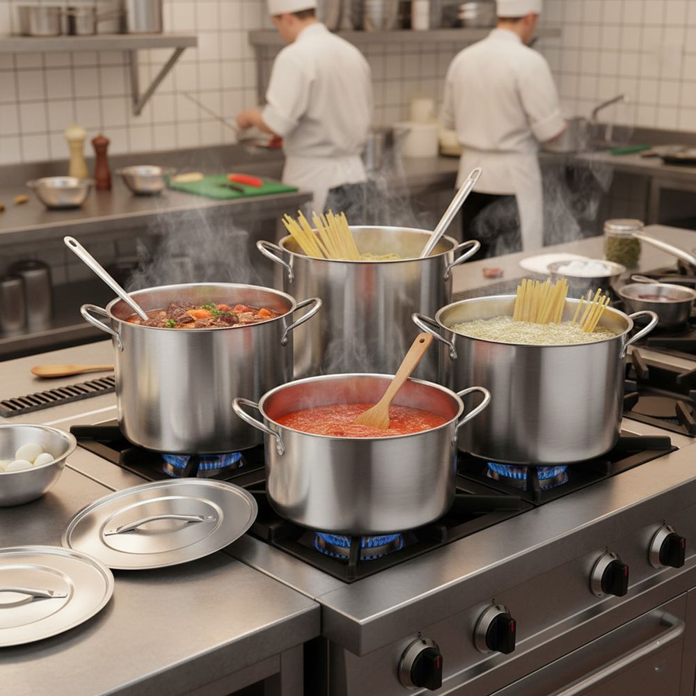 Equip your kitchen with this essential 4 piece stockpot set. This Carolina Cooker® set will have you cooking your favorite recipes with ease. Contains 4 stainless steel pots with lids.