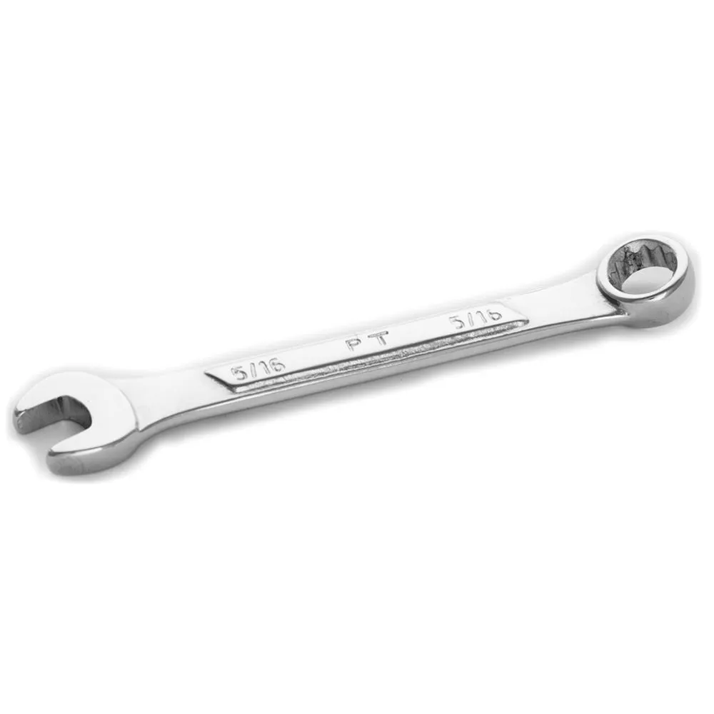 Here we have another quality tool from Performance Tools in this 5/16" combo wrench. Made from drop forged and hardened chrome alloy steel, this combo wrench is built to hold up to the rigors of repairing automobiles and equipment.