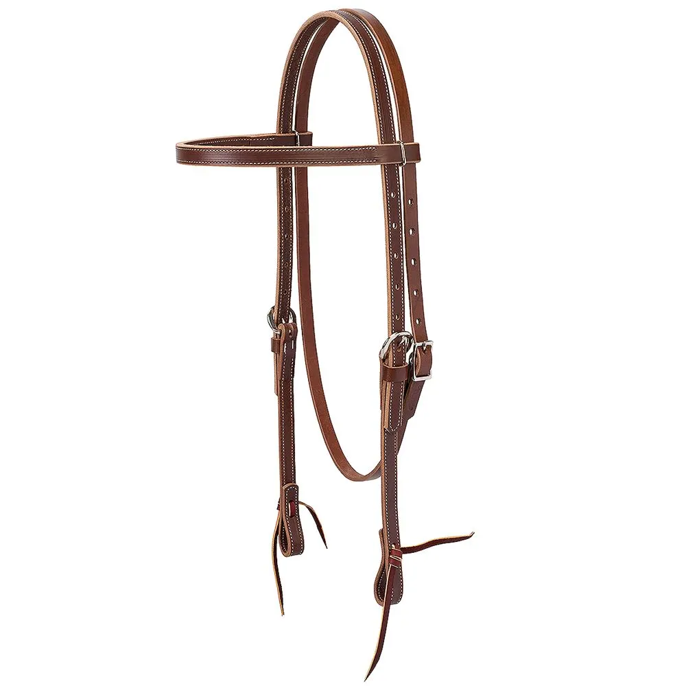 Looking for a single ply 5/8 inch leather headstall for a standard size horse? This headstall features nickel plated hardware and a brown litgo leather lace water tie.