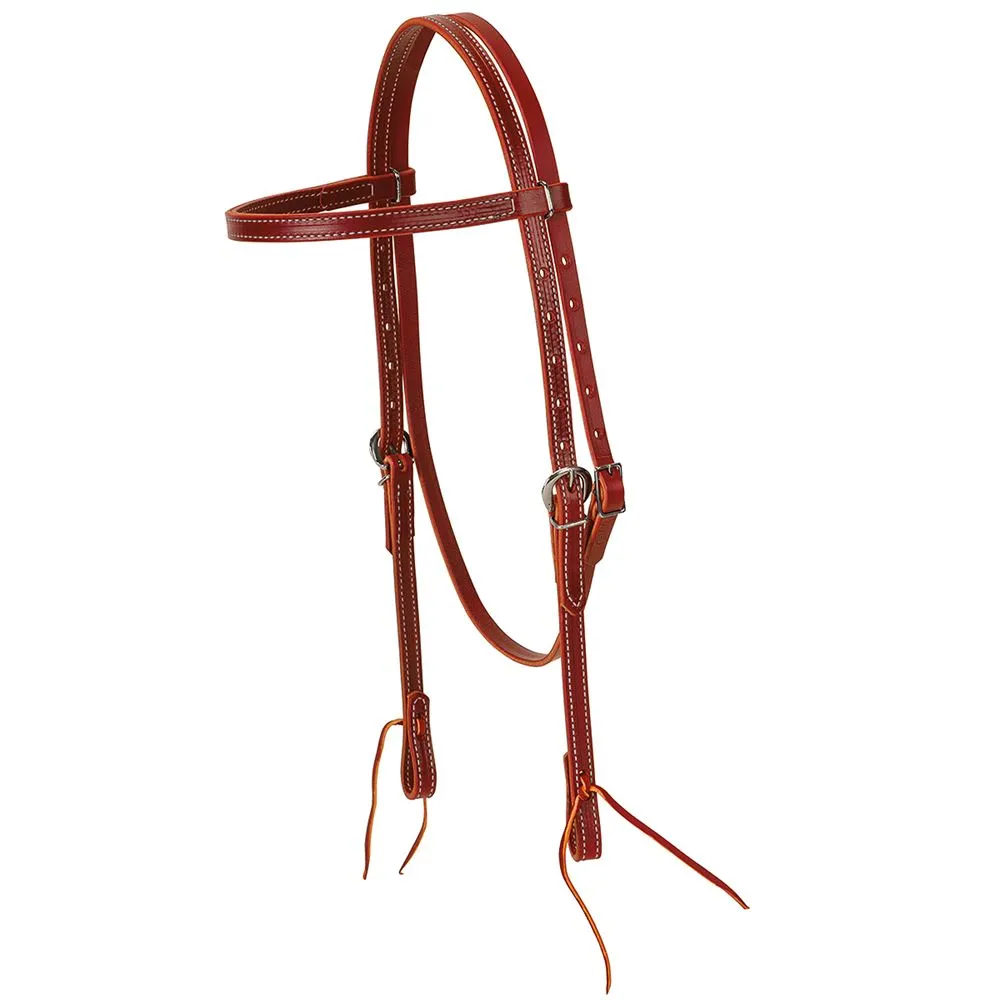 Looking for a single ply 5/8 inch leather headstall for a standard size horse? This headstall features nickel plated hardware and a burgundy tan leather lace water tie.