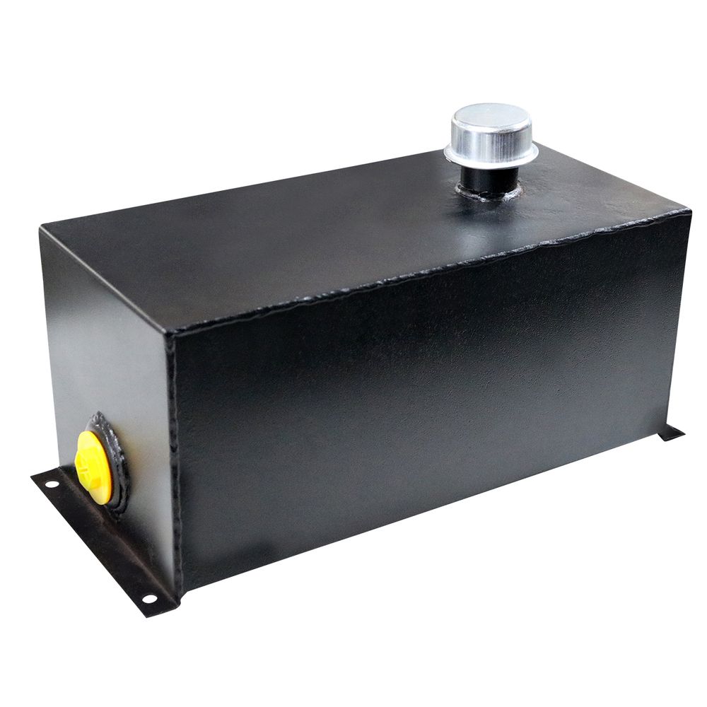 This 5 gallon hydraulic reservoir is constructed of sturdy 12 gauge steel that is black powder coated for protection. This tank has 1-1/8" wide mounting flanges with (4) 3/8" mounting holes to secure in your location. This item includes a clip-on style breather cap as well as 3/4" NPT return port and a 1-1/2" NPT suction port.