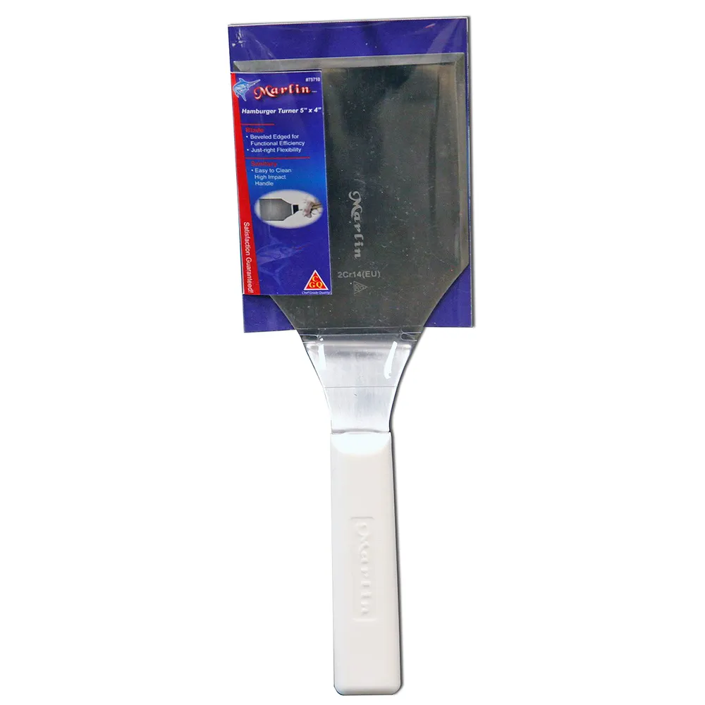 This 5" X 4" Hamburger Turner is built tough and is designed to be more sanitary.