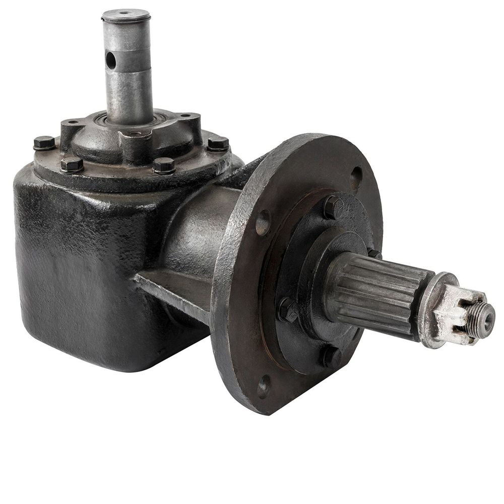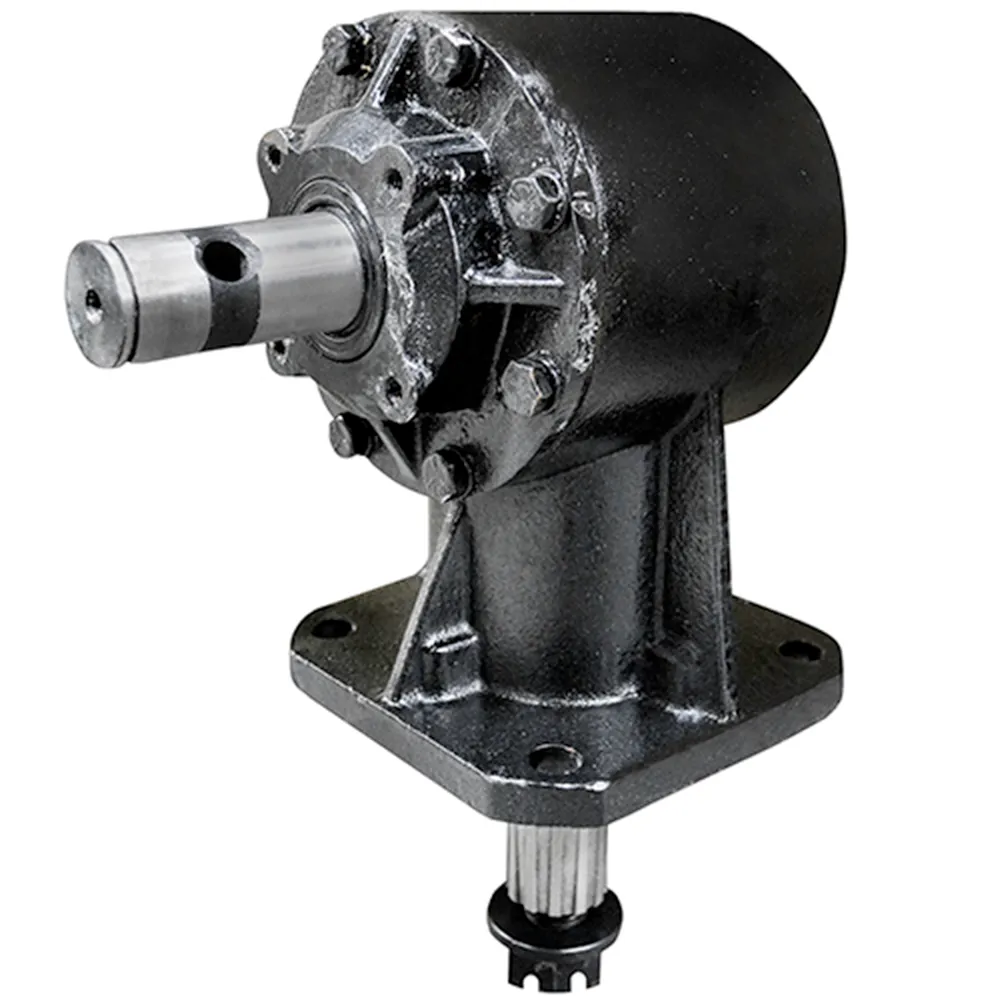Gearboxes work to administer a transfer of speed and torque through their internal gear rotation, helping the overall performance of your rotary cutter. This RW-300 gearbox operates at 55 HP. The housing is constructed from durable ductile iron and the smooth input shaft measures 1-3/8 inches. It has a beveled type of gear, with the gear ratio measuring 1:1.47. Designed for use with 4 foot, 5 foot, and 6 foot rotary cutters, this rotary cutter gearbox has 4 bolt holes measuring 5/8 inch on a 6-3/4 inch bolt circle for installment.