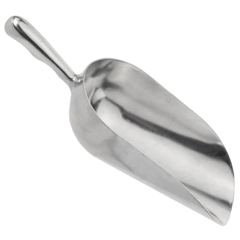 You can use this versatile scoop in the kitchen, ice machine, or animal feeds. It is made of highly polished aluminum for a light, rust-resistant round bottom scoop.