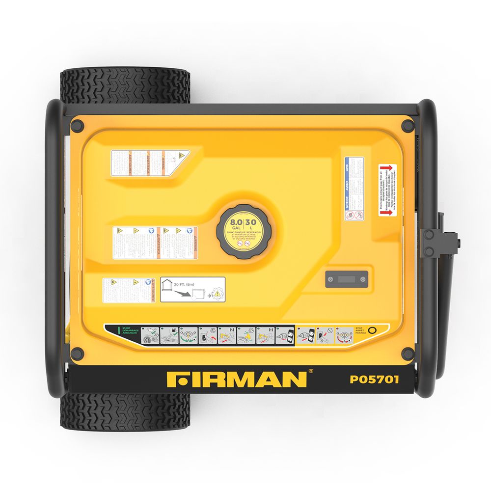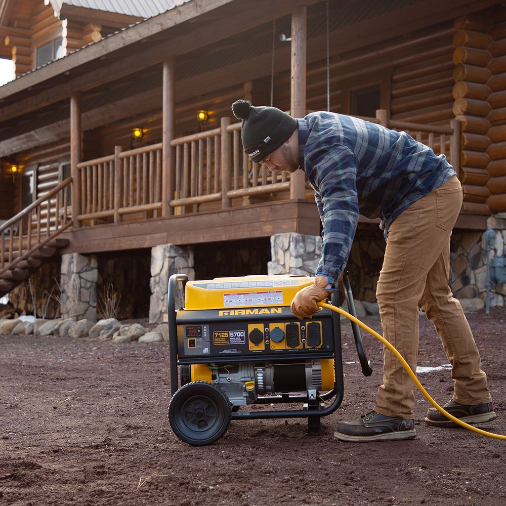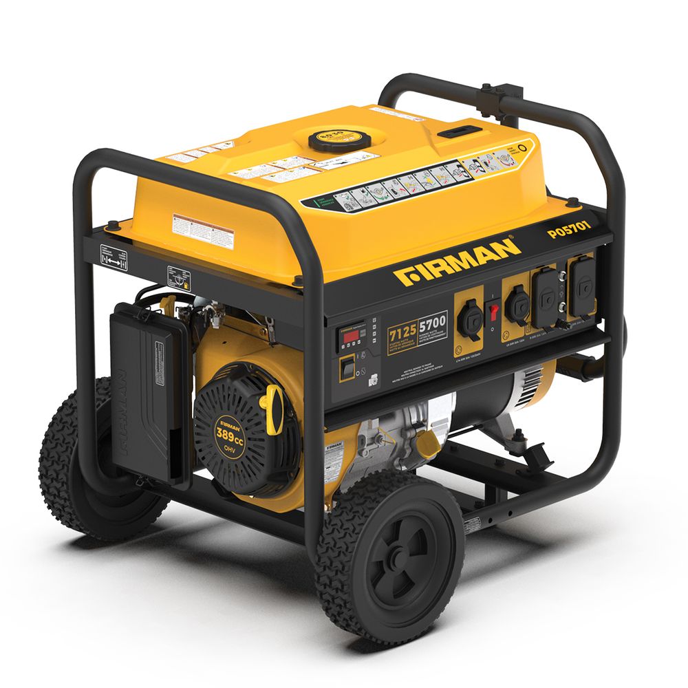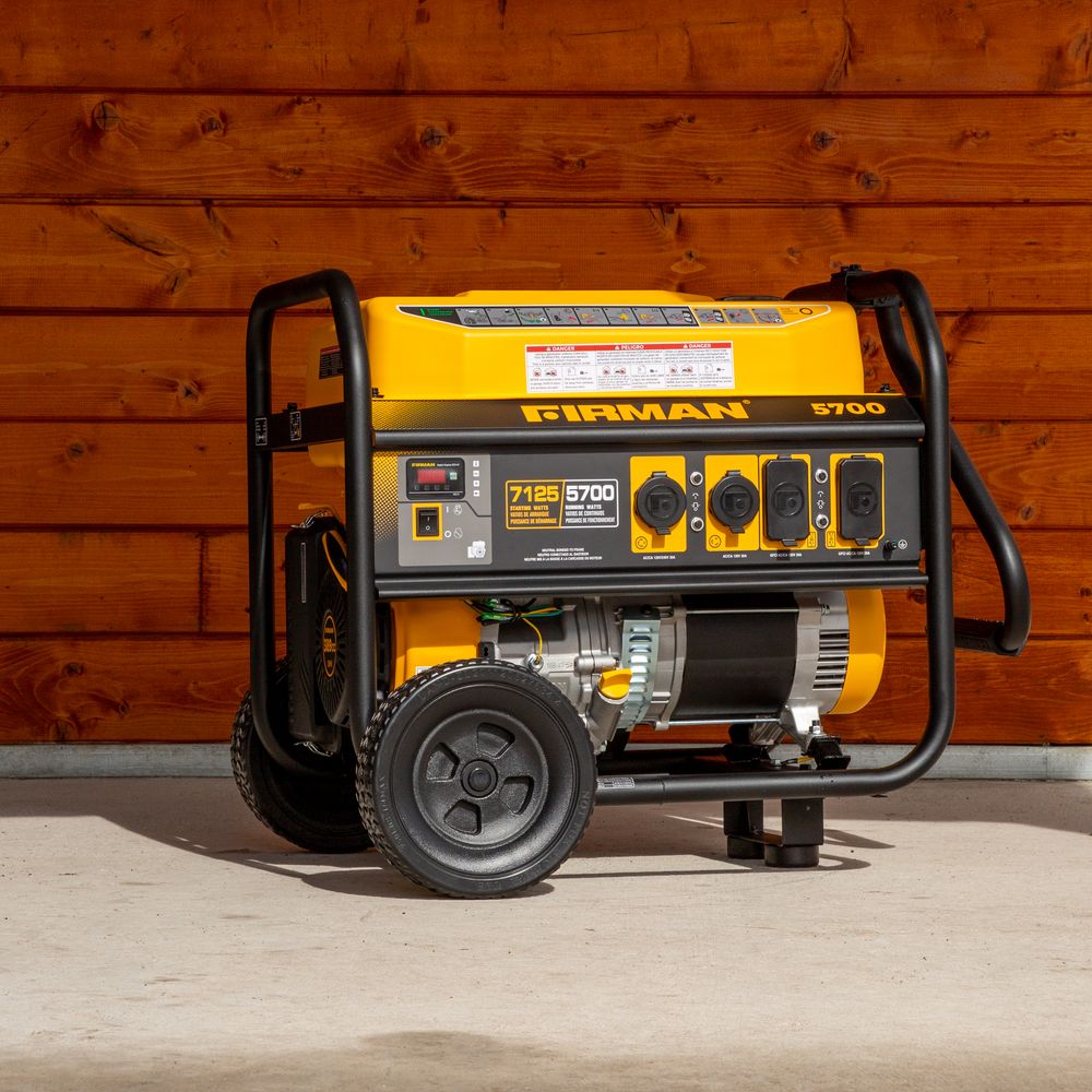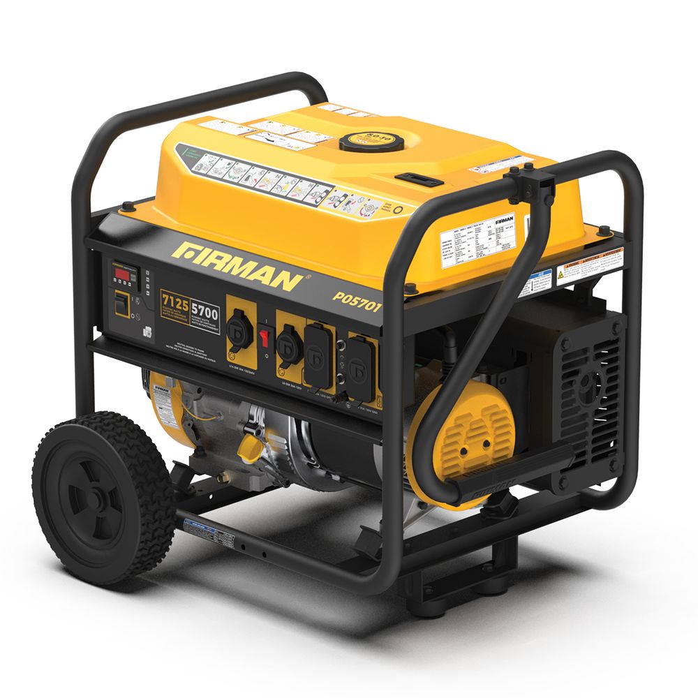 This portable generator has a 5700W electric start is 120/240V and runs on gasoline. Offering a long-lasting performance even in the most challenging situations.