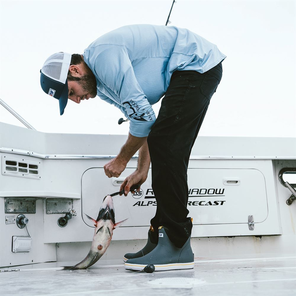 100% waterproof, and features a slip-resistant Chevron outsole this ankle deck boot is handcrafted specifically for Off-Shore anglers. This deck boot is perfect for any on-the-water athlete looking for protection with slip-on-the-go styling and is constructed with hand-layered rubber.